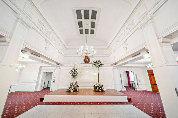 The hall is beautiful and was a beautiful venue for our night. It was BEYOND fantastic that we were able to bring in our own food and decorations, etc…. They were more than helpful offering up suggestions for vendors that often work with the building but not pushy in the least bit. -Steph